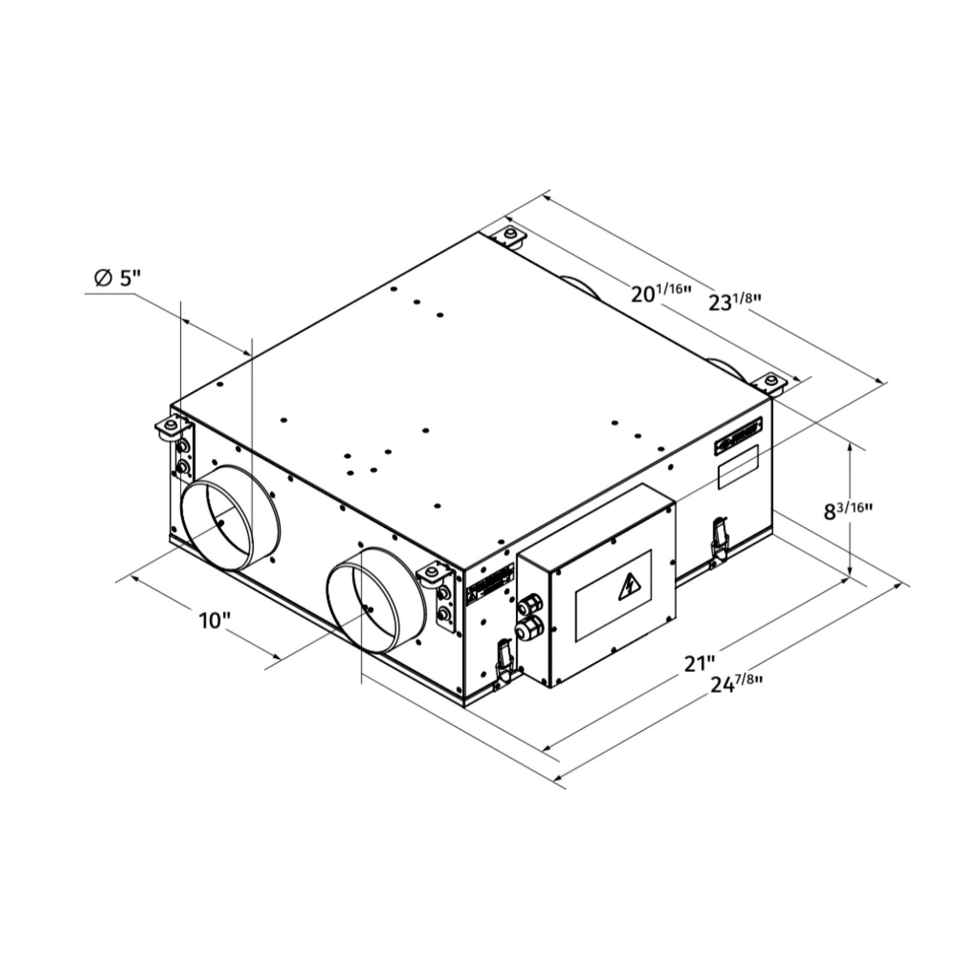 With a slim height of 8 3/16", the Frigate 120S is easier to place in tight mechanical rooms, basements, or utility spaces where traditional HRVs can be awkward to fit.